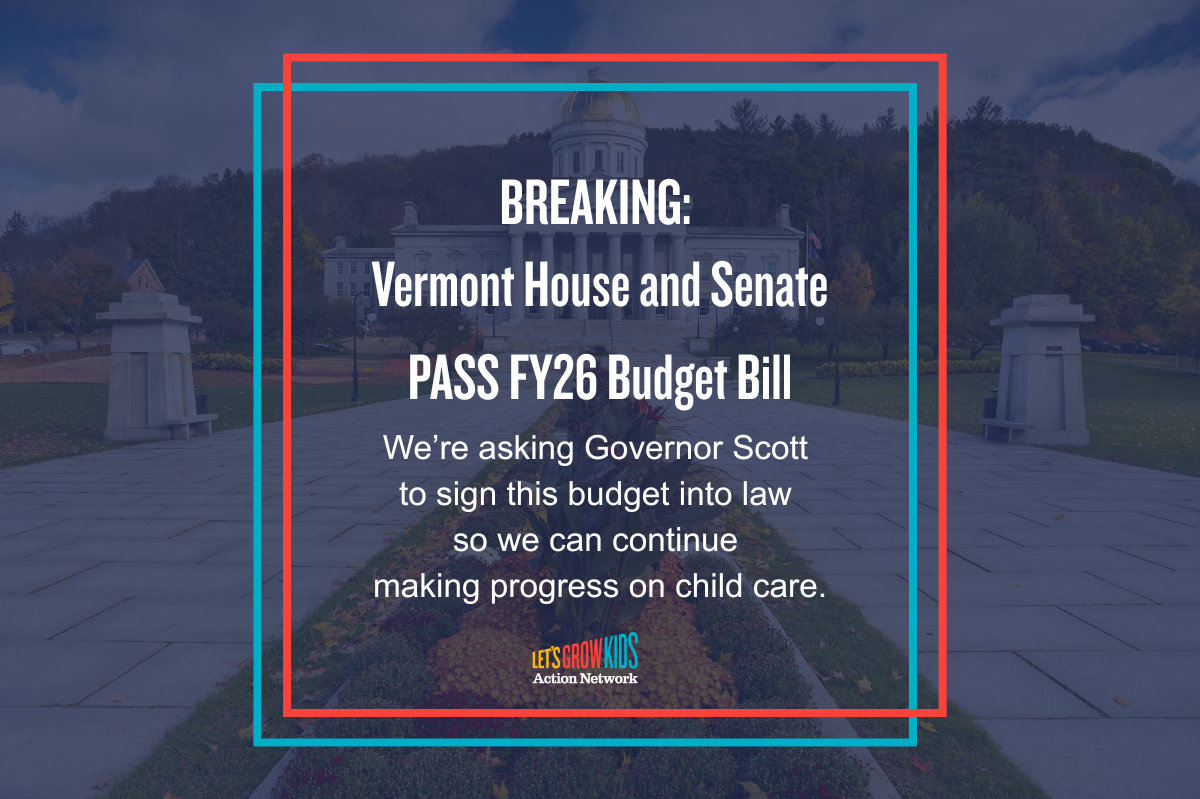 "The FY26 budget bill passed by the House and Senate includes continued public investment in our child care system and funding to expand critically needed child care capacity. As the advocacy organization leading Vermont’s child care movement, we fully support this budget bill.